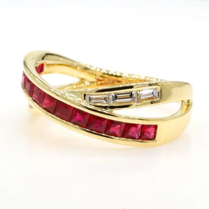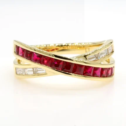 18K Solid Gold Red Princess Ruby & Lab Grown Diamond 0.96 Carat Cocktail Band