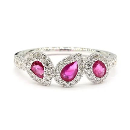 18K Solid Gold Red Oval Ruby & Lab Grown Diamond 1.61 Carat Wedding Band