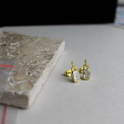 18K Solid Gold Emerald Cut White Sapphire Bezel Earrings with Lab Grown Diamond