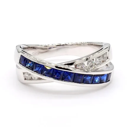 18K Solid Gold Blue Princess Sapphire & Lab Grown Diamond 1.15 Carat Cocktail Band
