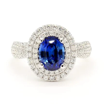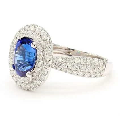 A 4.78 CT oval blue sapphire set in 18K solid gold, enhanced with E/VS1 lab grown diamonds. IGI certified and BIS hallmarked for trust and brilliance.
