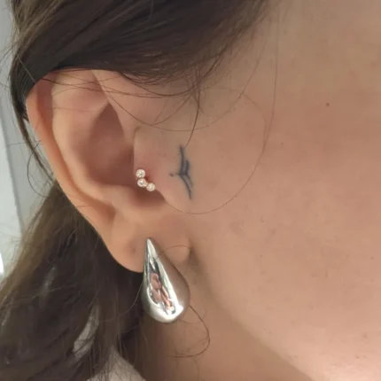 18K Solid Gold Lab Grown Diamond Trio Bezel Piercing – Screw Back Stud for Tragus & Cartilage