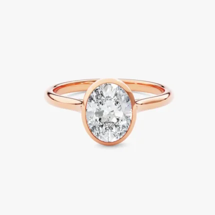 18K Solid Gold 1.00 CT Oval Cut Lab Grown Diamond Bezel Engagement Ring