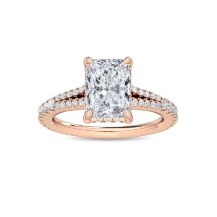 18K Solid Gold 2ct Radiant Cut Lab Grown Diamond Engagement Ring with Split Prongs and Pave Band