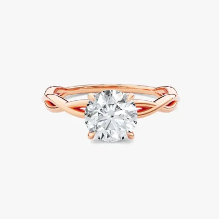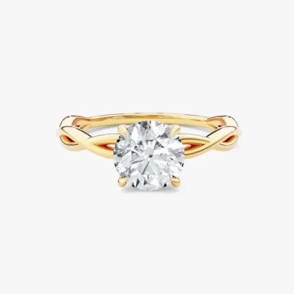 18K Solid Gold 1.00 CT Round Cut Twisted Solitaire Lab Grown Diamond Engagement Ring