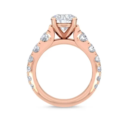 18K Solid Gold 2.57 CT Lab Grown Diamond Round Center with Pavé Side Stones Solitaire Engagement Ring