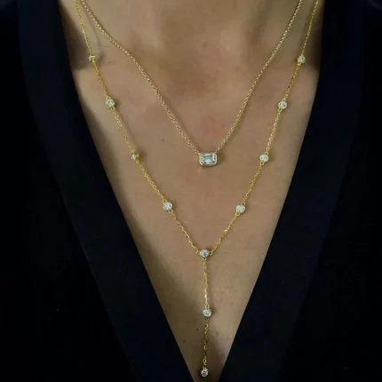 18K Solid Gold Diamond Lariat Necklace | Lariat Diamond Necklace | Dainty Diamond Necklace