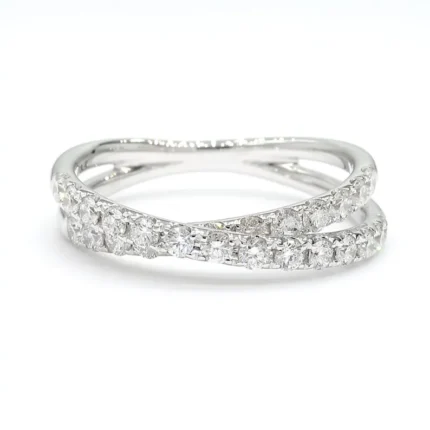 An elegant 18K solid gold band adorned with 0.61 carats of sparkling lab grown round white diamonds, perfect for everyday elegance or stacking.