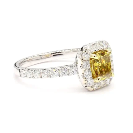18K Solid Gold 1.46 Carat Cushion Yellow Lab Grown Diamond Cocktail Ring