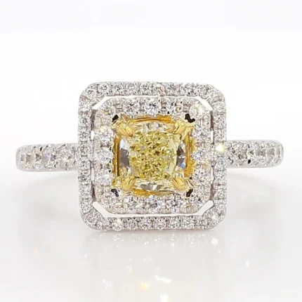 18K Solid Gold Cushion Lab Grown Yellow Diamond 1.24 Carat Cocktail Ring