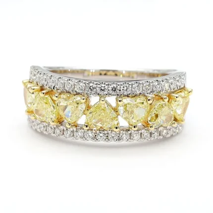 18K Solid Gold Heart Lab Grown Yellow Diamond 2.09 Carat Cocktail Ring