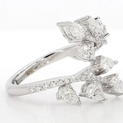 A timeless 1.27 ct cocktail ring featuring a pear-cut lab grown diamond in 18K solid gold, accentuated by round white diamonds. IGI & BIS certified.