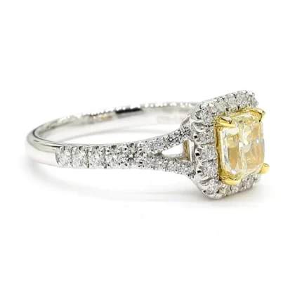 18K Solid Gold Cushion Lab Grown Yellow Diamond 1.14 Carat Cocktail Ring