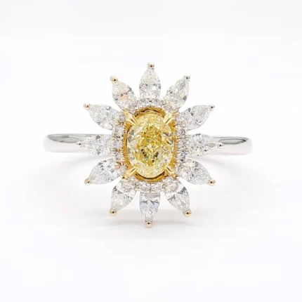 18K Solid Gold Oval Lab Grown Yellow & White Diamond 1.41 Carat Cocktail Ring
