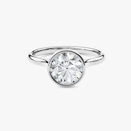 1.00ct round cut natural diamond bezel engagement ring in 18K solid gold. GIA certified for timeless brilliance.