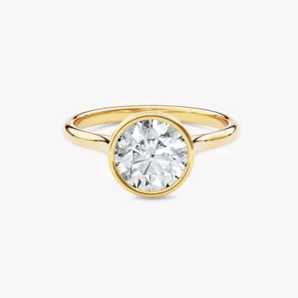 2.00ct round cut natural diamond bezel engagement ring in 18K solid gold. GIA certified for brilliance and elegance.