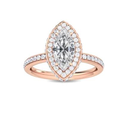 2.01ct marquise and round diamond halo pavé engagement ring in 18K solid gold. Features a 1.25ct marquise center stone. GIA certified.