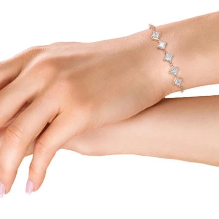 Timeless 0.65ct princess cut natural diamond bracelet in 18K solid gold. GIA certified & BIS hallmarked for brilliance and authenticity.