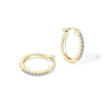 Dainty 18K gold huggie hoop earrings with 0.40ct natural diamonds. Lightweight, GIA certified, VS1 clarity, BIS hallmarked. Elegant and everyday-ready.