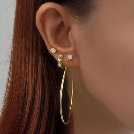 18K Solid Gold Diamond Huggie Earrings | Double Hoop Diamond