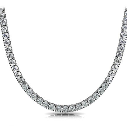 18K Solid Gold 10 CT Natural Diamond Classic Tennis Necklace