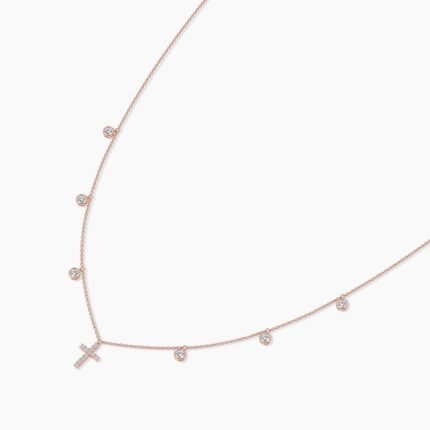 Elegant 18K Gold Diamond Yard Necklace with Cross Pendant featuring 1.20 CT GIA-certified natural diamonds. A spiritual yet luxurious keepsake.