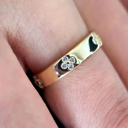 18K Solid Gold Four Leaf Clover 0.3ct Natural Diamond Band