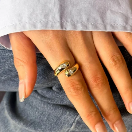 18K Solid Gold 0.6ct Double Pear Natural Diamond Ring | 18K Solid Gold Stackable Rings | Teardrop Fashion Ring