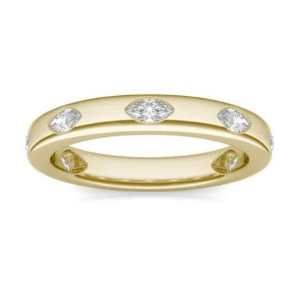 18K Solid Gold eternity band with marquise and round-cut natural diamonds, 0.91 CTW. Bezel-set, GIA-certified, and BIS hallmarked.