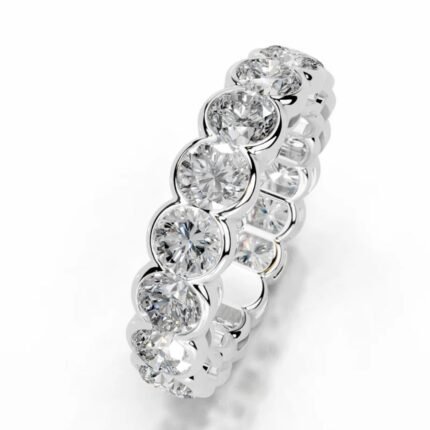 Elegant 18K gold half bezel eternity band with 2.00 CT round brilliant natural diamonds. GIA certified & BIS hallmarked for lasting beauty.