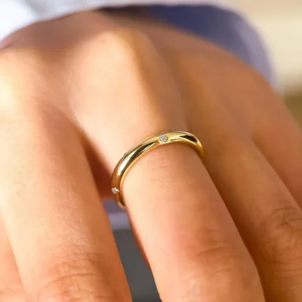 Elegant 18K Solid Gold Dainty Diamond Band Ring with 0.11ct natural diamonds (E color, VS1 clarity). Perfect for stacking or everyday wear. GIA certified & BIS hallmarked.