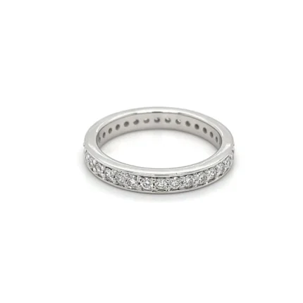 Timeless 1.00 CT natural diamond eternity wedding band in 18K solid gold with a 4-prong setting. GIA certified & BIS hallmarked.
