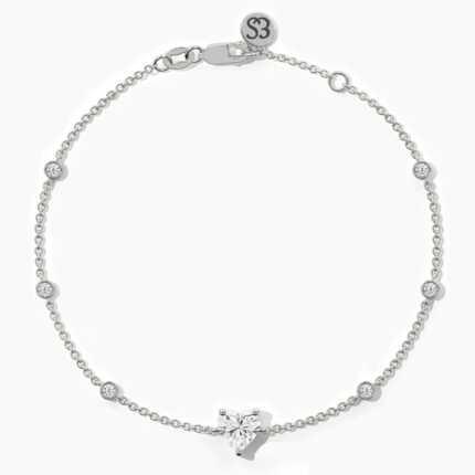 18k Solid Gold Lab Grown Diamond Station Bracelet | Heart Cut Lab Grown Diamond