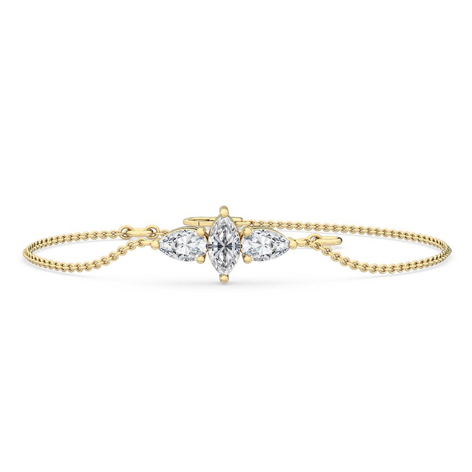 0.50Ct marquise & pear cut dainty Lab Grown diamond bracelet in 18K solid gold. IGI Certified. A refined, feminine everyday luxury.