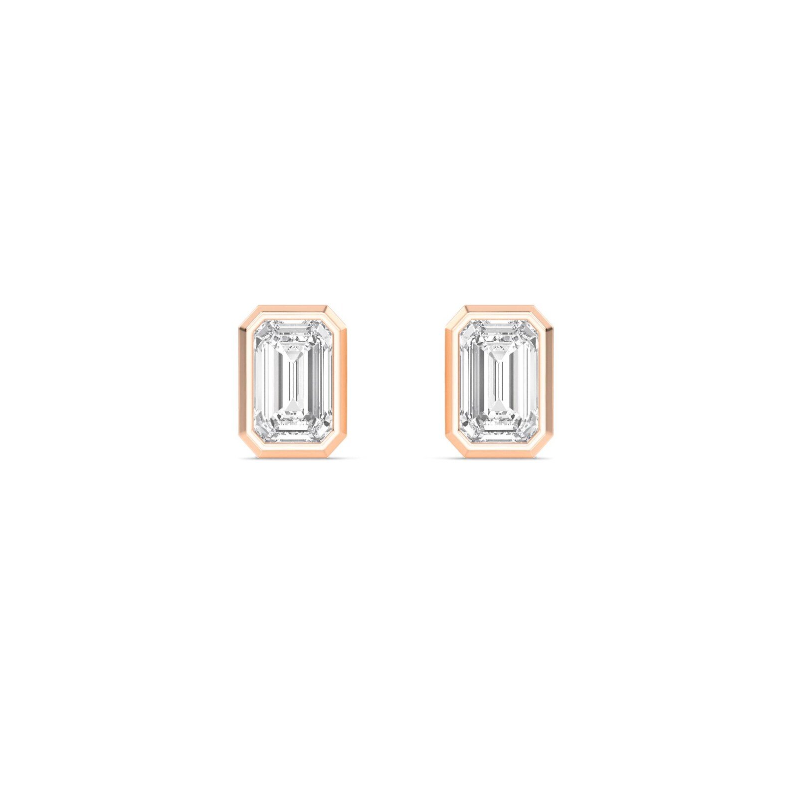 A timeless pair of emerald cut Lab Grown diamond stud earrings bezel set in 18K solid gold. With a total carat weight of 1.08ct, these diamonds in E color and VS1 clarity deliver understated brilliance and everyday elegance. Perfect for both casual sophistication and special occasions.