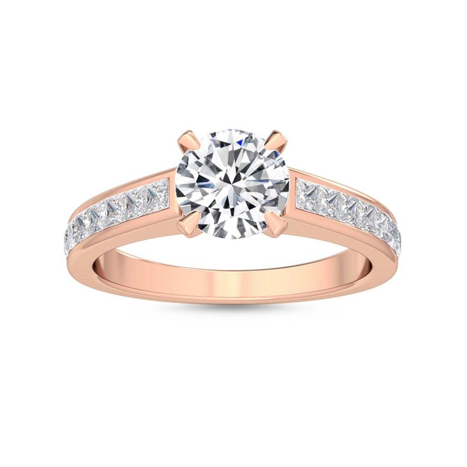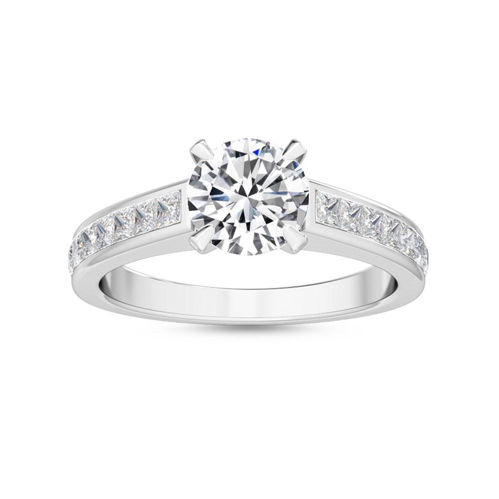 1.33ct Round Cut Lab Grown Diamond with Princess Cut Side Stones Engagement Ring in 18K Solid Gold