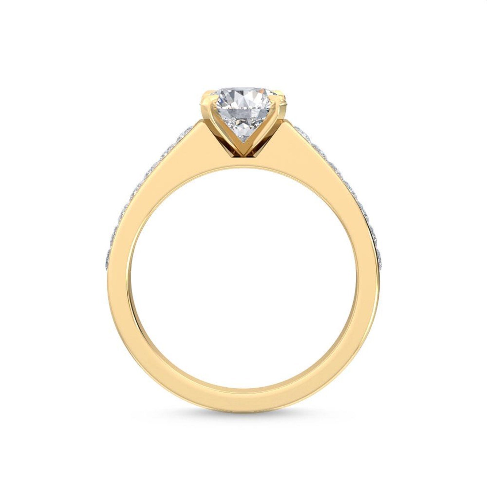 A timeless 18K gold engagement ring featuring a brilliant 0.90 carat lab grown round diamond with VS1 clarity and E color.