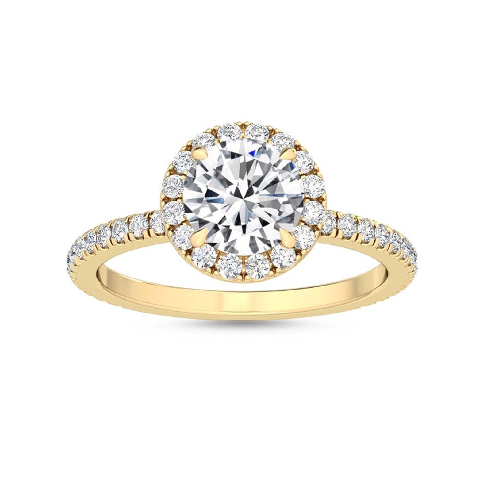 Elegant 1.54ct round-cut halo pavé natural diamond engagement ring in 18K solid gold. GIA certified for authenticity.