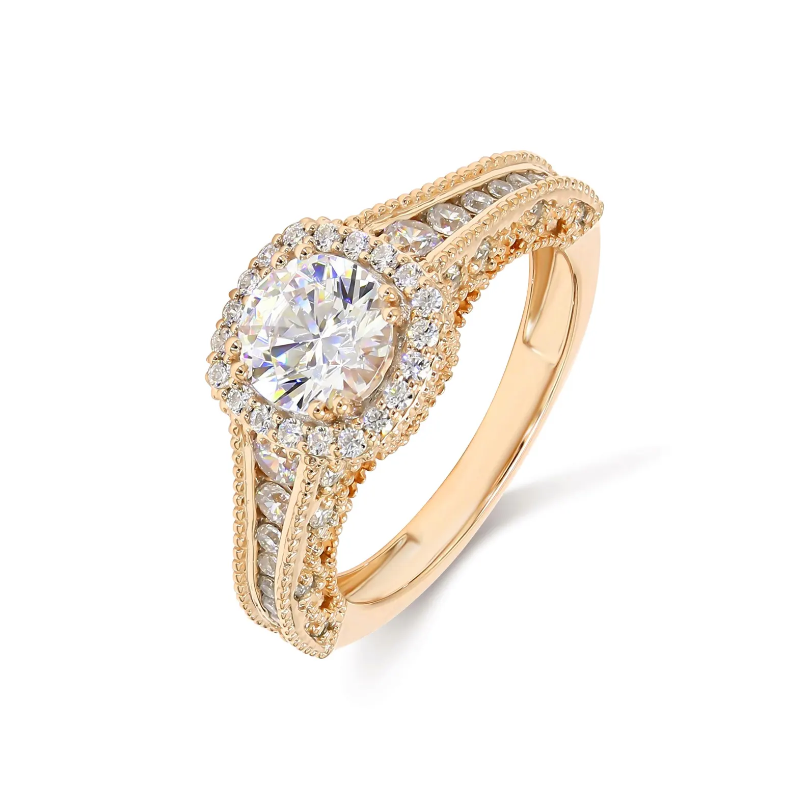 Elegant 18K solid gold halo engagement ring with a 1.00ct round center diamond, totaling 1.79ct. GIA certified natural diamonds.