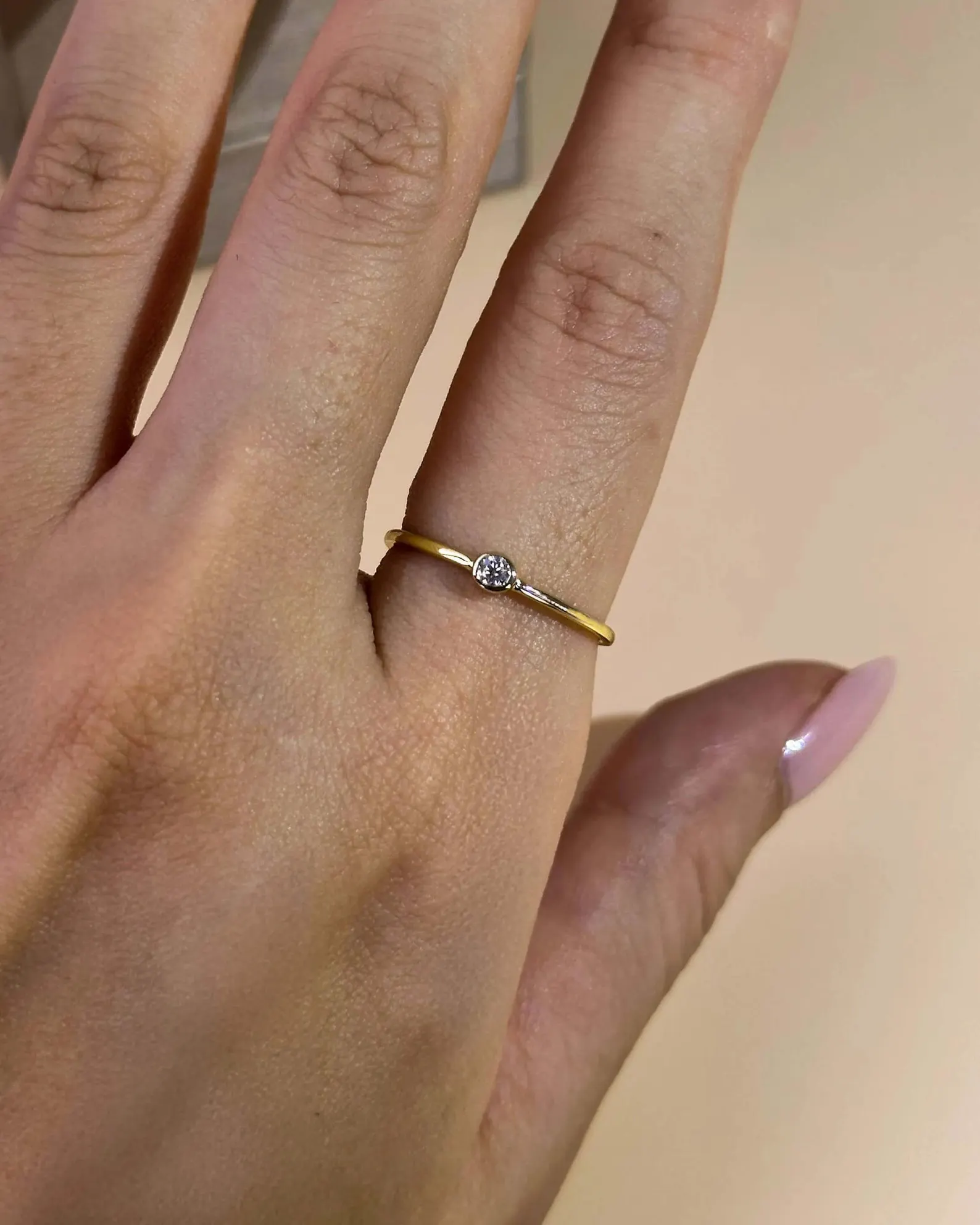 Minimalist 18K Solid Gold Pinky/Stacking Ring with a 0.10ct Lab Grown diamond (E color, VS1 clarity). IGI certified & BIS hallmarked.