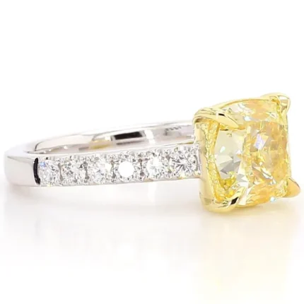 18K Solid Gold IGI Certified Lab Grown Yellow Cushion Diamond 3.40 Carat CTW Cocktail Ring
