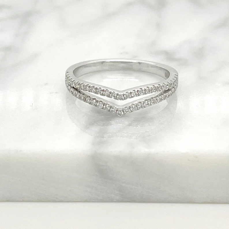 18K Solid Gold 0.27 CT V-Shaped Chevron Lab Grown Diamond Stacking Ring