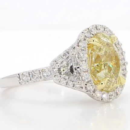 18K Solid Gold IGI Certified Lab Grown Yellow Oval Diamond 3.28 Carat CTW Cocktail Ring