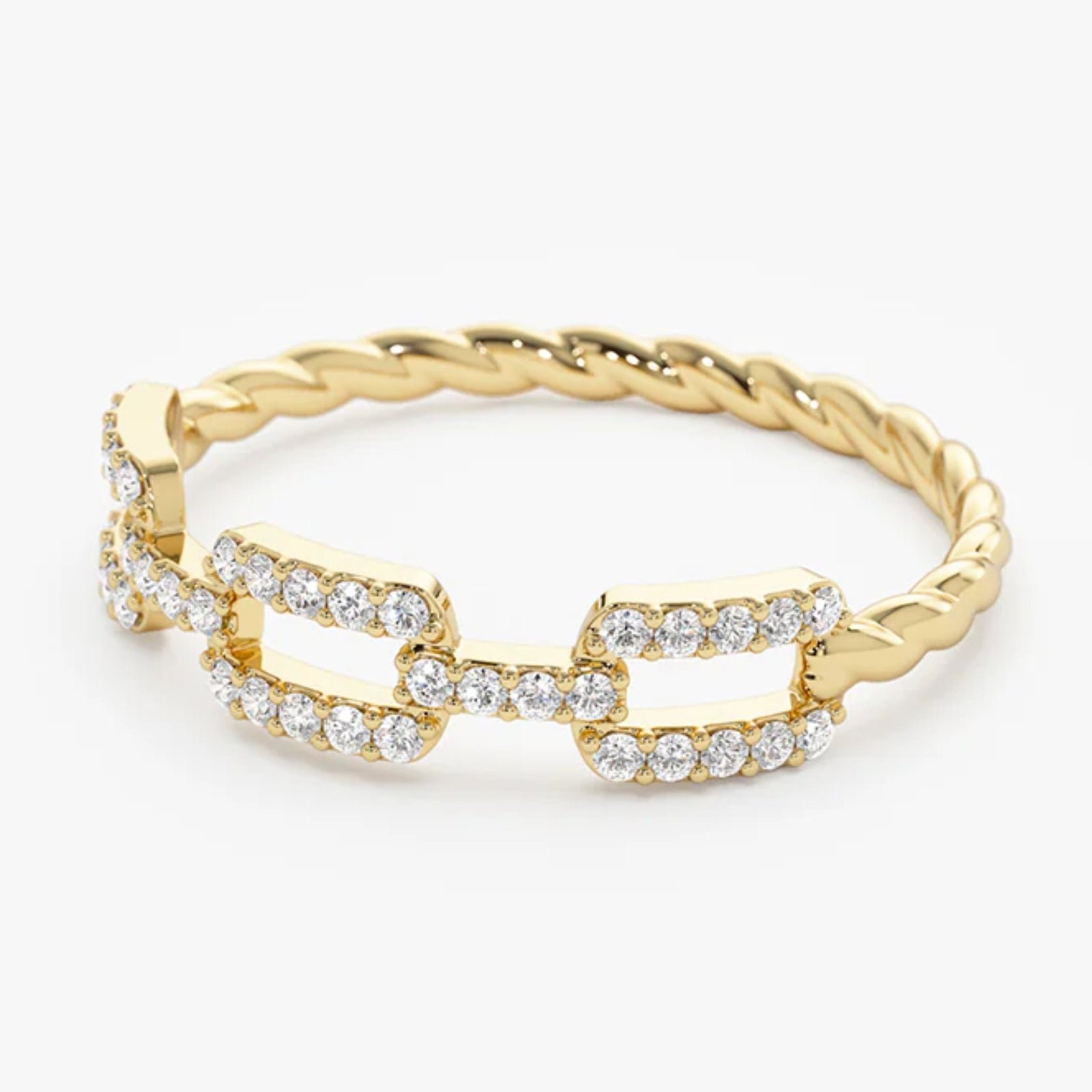 Elegant 18K solid gold engagement ring with 0.38ct IGI certified round brilliant Lab Grown diamonds in a chain link twisted rope design.