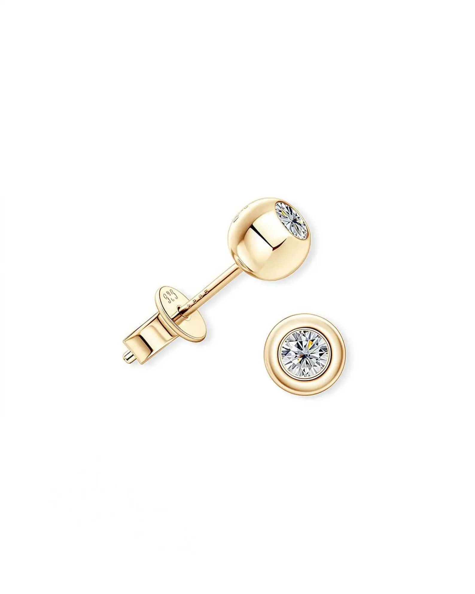 Minimalist 18K solid gold diamond bead studs featuring 0.40ct natural round diamonds. Modern ball-inspired design. GIA certified.