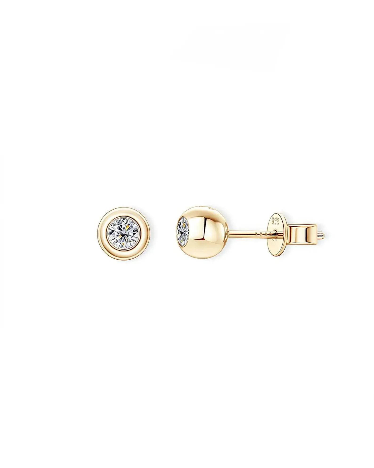 18K Solid Gold 0.4ct Natural Diamond Bead Studs | 18K Solid Gold Natural Diamond Ball Stud Earrings