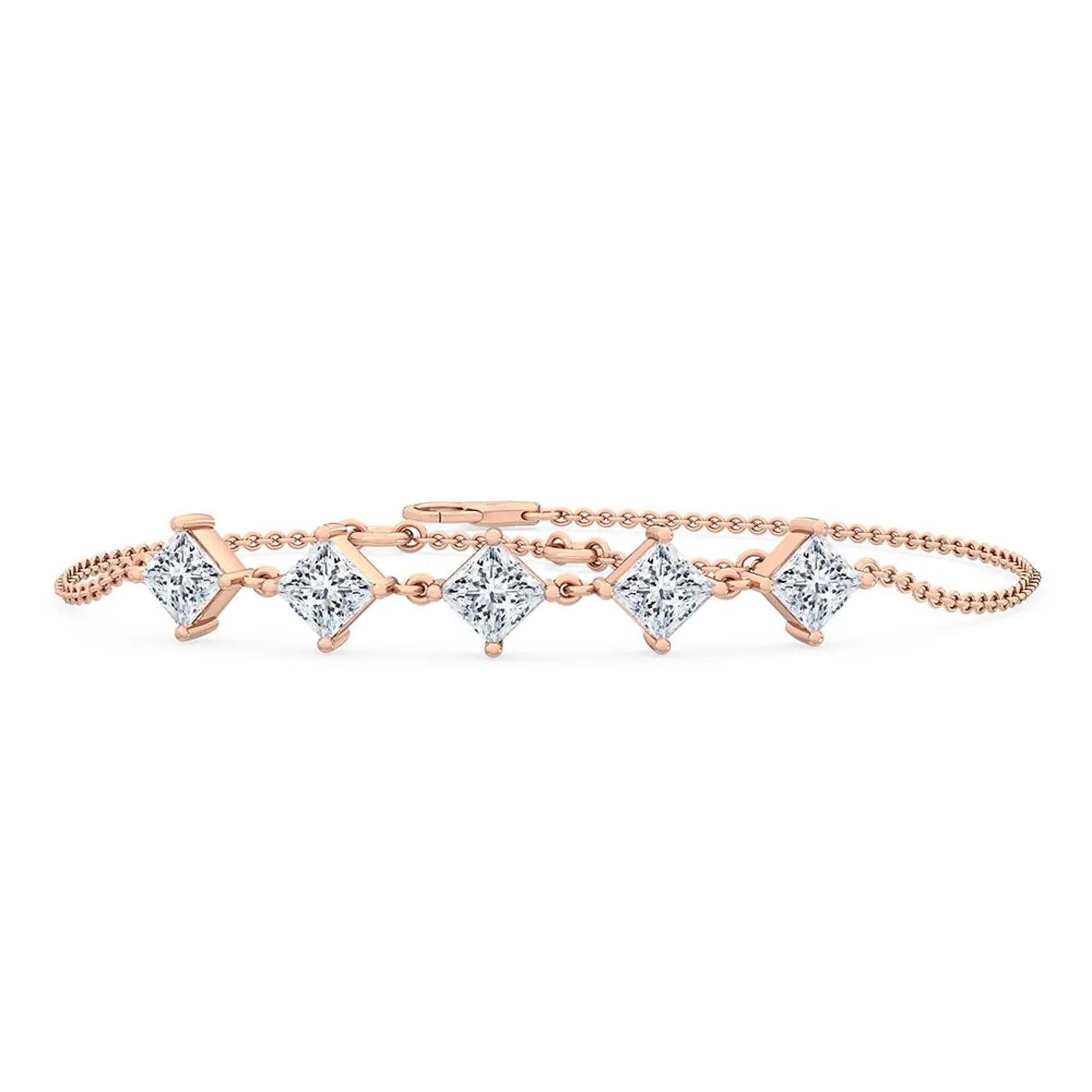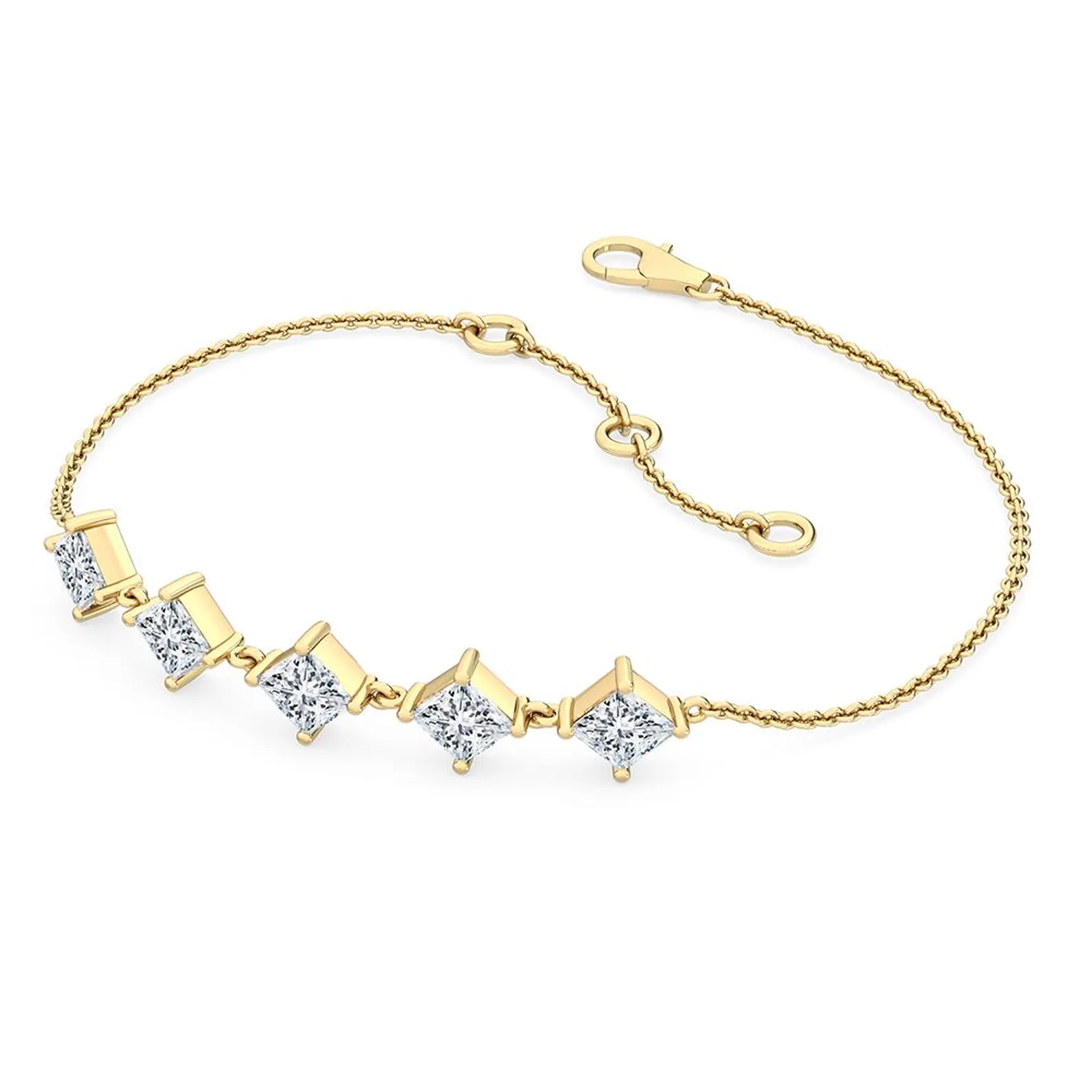 Timeless 0.65ct princess cut natural diamond bracelet in 18K solid gold. GIA certified & BIS hallmarked for brilliance and authenticity.