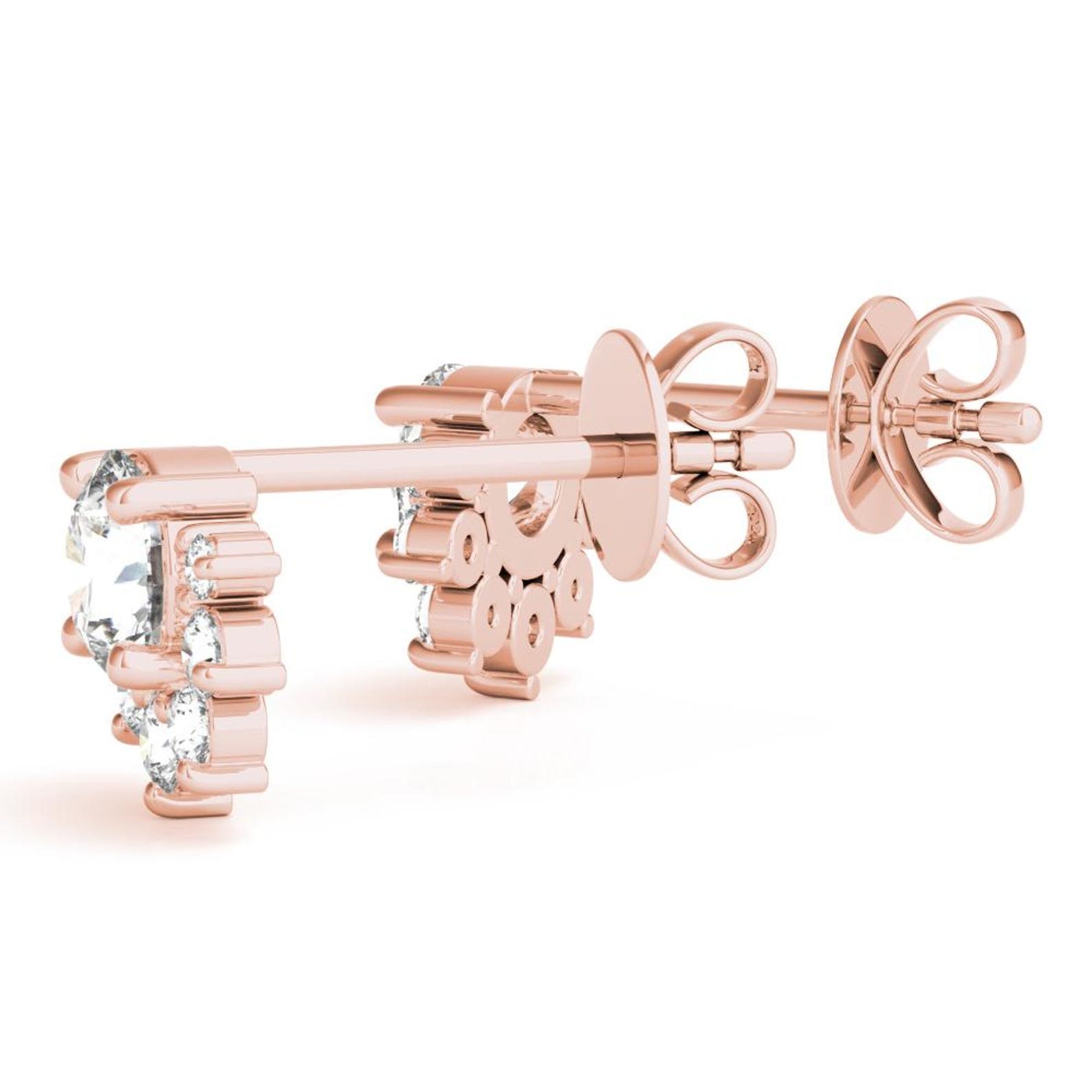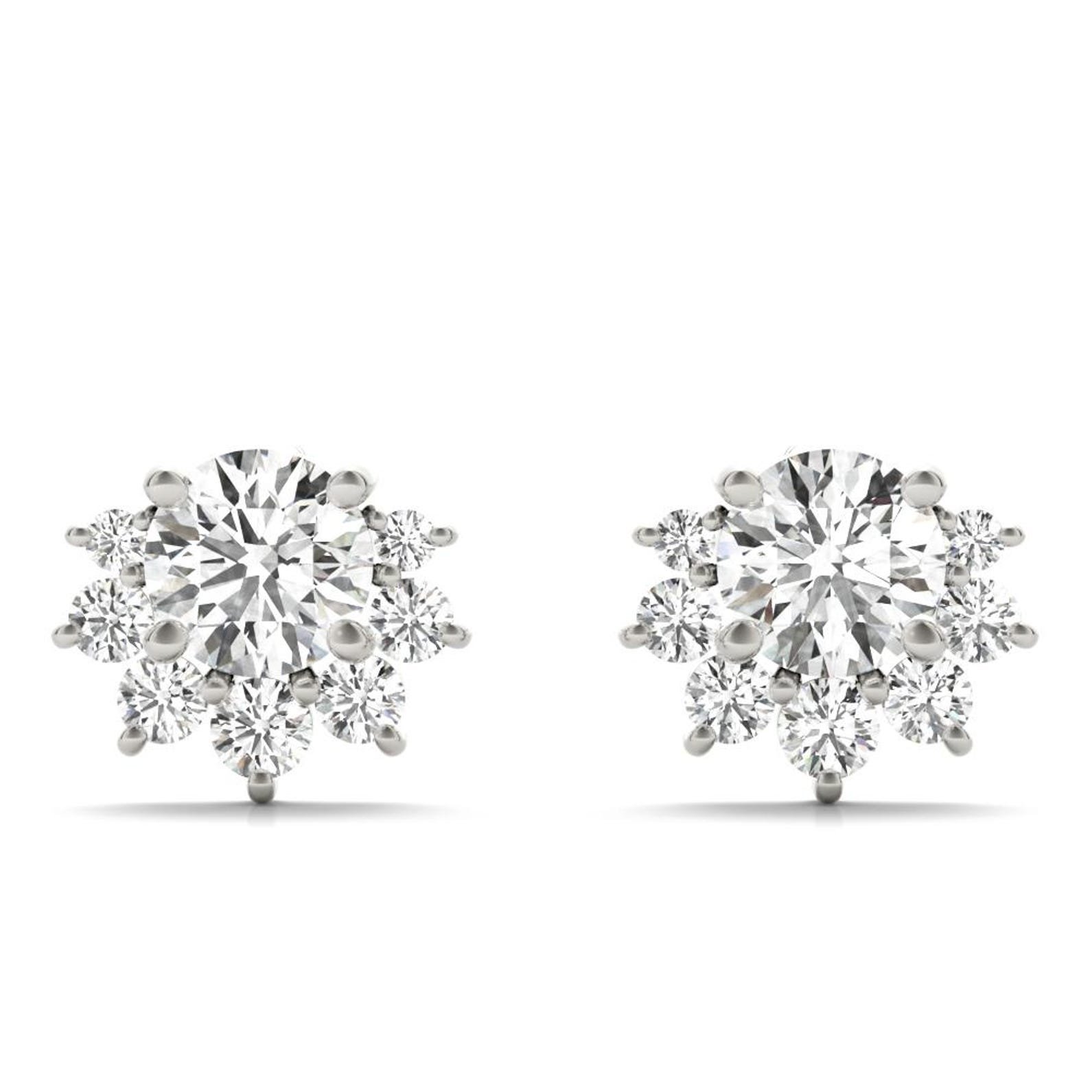 18K Solid Gold 0.70 Ct Lab Grown Diamond Floral Cluster Stud Earrings