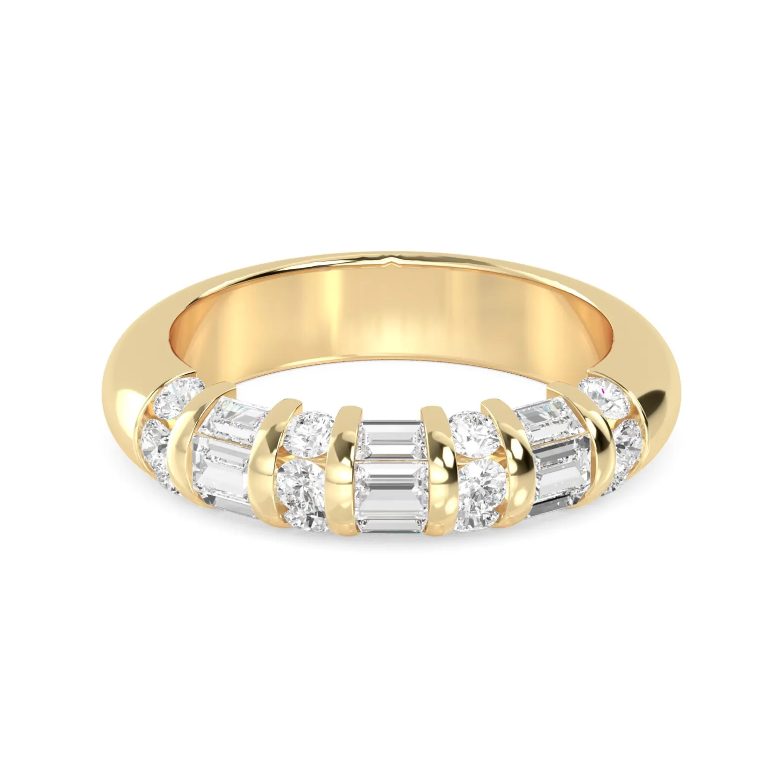 18K Solid Gold 0.86ct Channel Set Round-Baguette Lab Grown Diamond Wedding Band