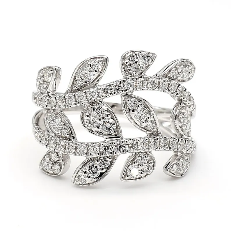 The diamonds—ranging in size from 1.15 mm to 1.99 mm—are precision-cut and arranged to maximize brilliance, creating a radiant play of light across the finger. Graded E color and VS1 clarity, these high-quality lab grown diamonds ensure exceptional sparkle with a conscious footprint.